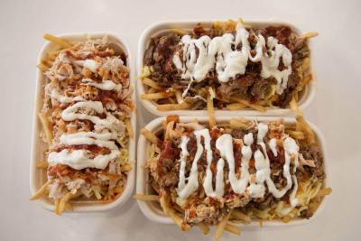 Chicken, Lamb or Both Crunchy Fries Topped with Your Choice of Meat, Mozzarella, Tomato, Sweet Chilli & Garlic Sauce.Meat Option
