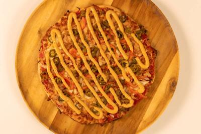 Tomato Base, Cheese, Onion, Fresh Capsicum, Chicken, Jalapenos, Southwest Sauce. (GFO)