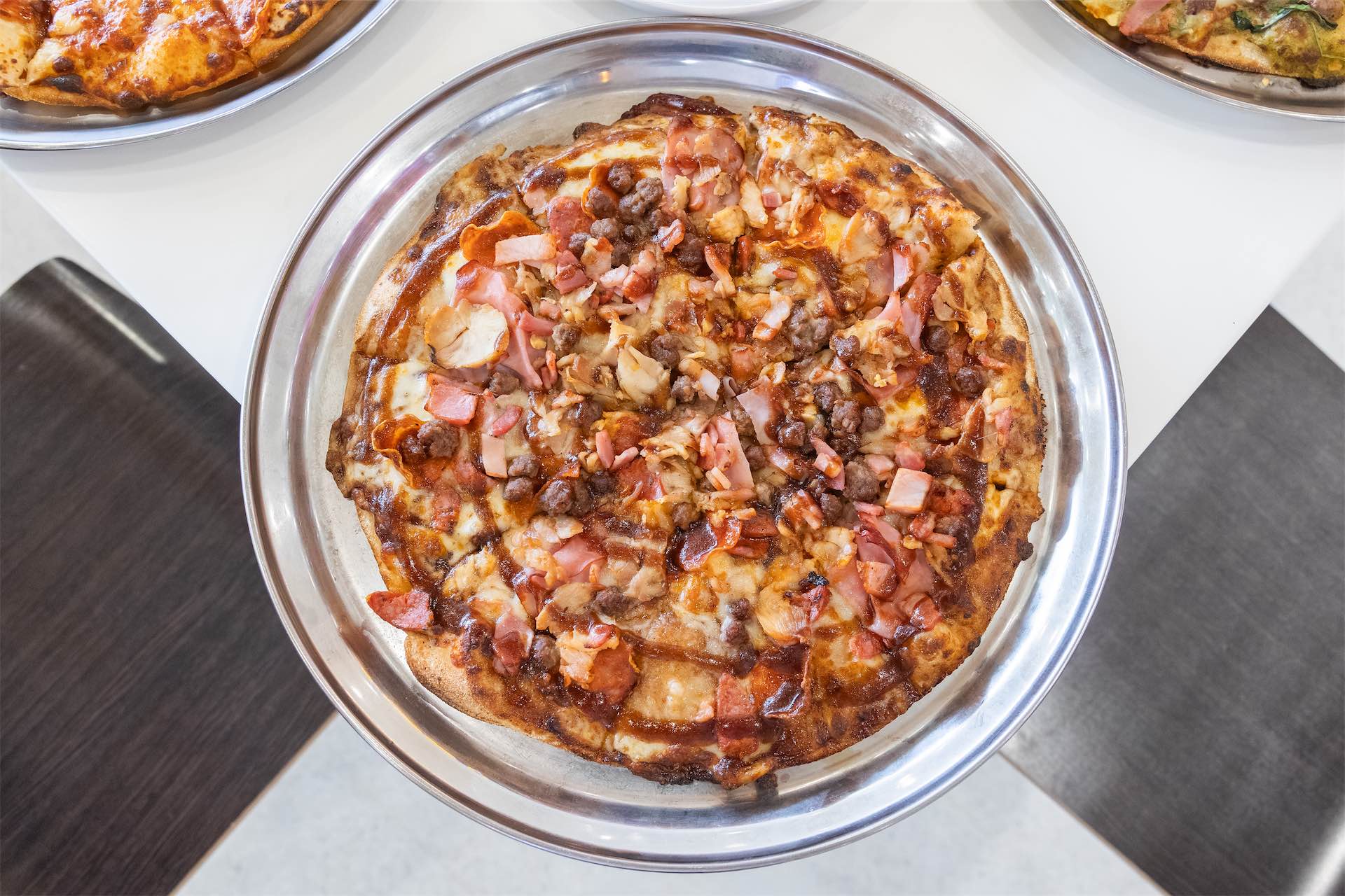 Meat Lovers$19BBQ Base, Ham, Chicken, Bacon, Salami, Caramelised Onion & Mozzarella topped with Creamy BBQ Sauce.×