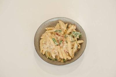 Creamy Pesto Base, Cheese, Semi-Dried Tomatoes, Onion, Spinach, Bacon, Olives & Fetta
