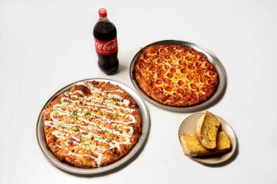 - Duo$44.502 Large Pizzas + Garlic Bread