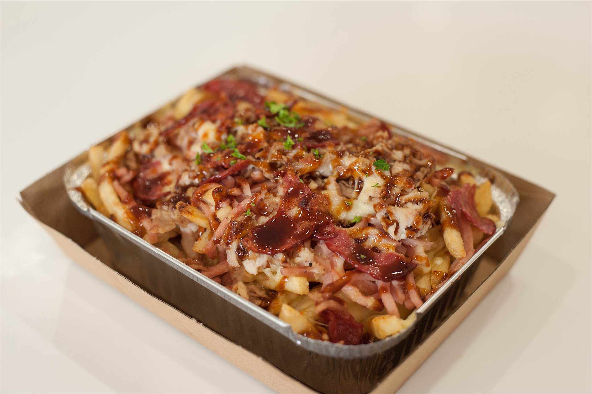 Crunchy Fries topped with BBQ Chicken, Shredded Ham, Bacon & Salami.Customise