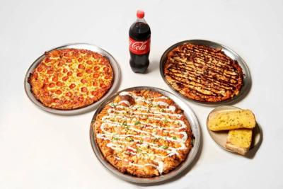 Triple Threat (Large)$64.95Any 3 Pizzas, Garlic Bread, 1.25L Drink