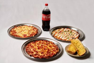 Triple Threat (Family)$80.95Any 3 Pizzas, Garlic Bread, 1.25L Drink
